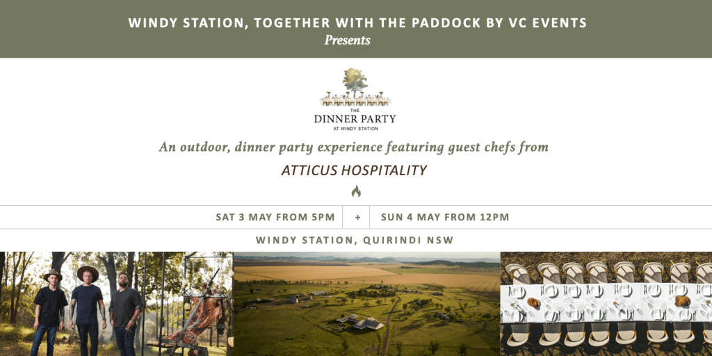 Windy Station. “Windy Station is a working farm, so it’s not always open to the public. We have so much interest about what we do here from people right across the country, so The Dinner Party is the perfect opportunity for us to throw the gates open and give our guests a unique, behind-